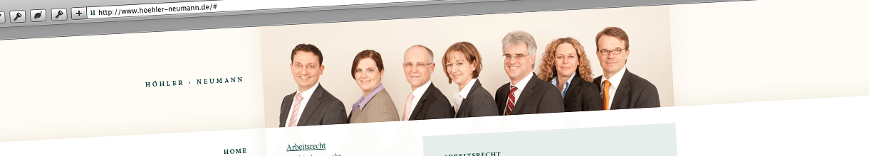 Wir erstellten die Webseite der Anwaltskanzlei Höhler-Neumann aus Aachen. Ziel war eine fluffige Javascript-Webseite mit Portraitfotos der Anwälte. Der Look und die Konzeption der Seite stammen von »Schlicht und Ergreifend«. Gestaltung: Schlicht und Erfgreifend Programmierung: Digital Noises